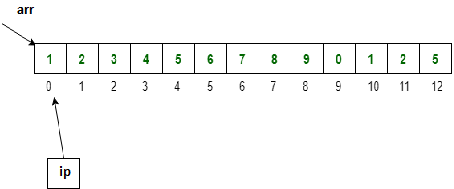 Initially ip pointer is pointing at (arr+4) or skipping starting first 4 position.