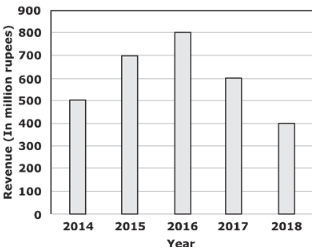 2. The total revenue of a company during 2014-2018 is shown in the graph. If the expenditure of the company in each year is 500 million rupees, then the aggregate profit loss (in percentage) on the total expenditure of the company during 2014-2018 is _______