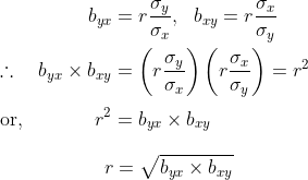 Thus, the correlation coefficient r is the geometric mean of the two regression coefficients byx and bxy.