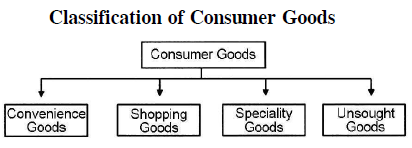 Explanation : Consumer goods can be classified into four categories: ∎ Convenience Goods: These goods are demanded by customers frequently in small quantities, but they must be immediately available at easily accessible retail shops. These are low cost, highly advertised items that are designed for mass markets and are sold to all income classes. All sales promotions devices are liberally used to stimulate consumer demand. These goods have to be distributed through numerous retailers. Examples of convenience goods are daily use items like soaps, detergents, biscuits, cosmetics and so on. Because most retail stores sell only a small volume of the total output of a convenience good, it is not economical for the manufacturer to sell directly to all retail outlets. Instead, the manufacturer depends on distributors or retailers to sell the product to the consumers. Intensive distribution is required for convenience goods. ∎ Shopping Goods: A tangible product for which consumers want to compare quality, price, and perhaps style in several stores before making a purchase is considered a shopping goods. These products need search efforts and special visits to central markets, there are not urgent purchases and buyers can postpone buying according to their convenience. They need not have numerous retail outlets. Buyers want to shop around and select goods after comparing quality, terms, style, price, services and so on. Examples of shopping goods are furniture, jewellery, fashion goods, appliances, automobiles. As fewer retailers are required, and retail stores typically buy shopping goods in large quantities, it is common for manufacturers to use short channels of distribution. Usually they sell directly to retailers. ∎ Speciality Goods: A tangible product, for which consumers have a strong brand preference, and are willing to spend substantial time and effort in locating the desired brand is called a speciality good. They are goods with unique features. They demand special shopping efforts. They are sold in speciality shops. Buyers develop brand preferences and make special efforts to buy it. It should be noted that in the modern marketing environment, there is a thin line of difference between shopping and speciality goods. Examples of speciality goods can be desired brands of expensive designer clothes (clothes designed by leading designers like J.J. Vallaya or Ritu Beri), expensive sound systems and so on. The most important feature of speciality goods is that consumers insist on a particular brand and are willing to spend considerable effort to find it. Like shopping goods, few retail stores are required to sell speciality goods. Manufacturers may follow exclusive distribution policy for selling speciality goods i.e., opening their own exclusive stores or selling franchise of exclusive stores. ∎ Unsought Goods: An unsought good is a new product that the consumer is not yet aware of or he is aware of that product but does not want it at this moment. An example of unsought goods can be a new product to be launched in the market which does not have a ready demand. Another example is personal insurance. Personal selling combined with advertising is the best strategy to sell unsought goods.