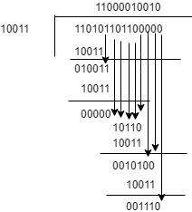 Explanation : Given frame for transmission is 1101011011 and generator polynomial is G(x) = x4 + x + 1 i.e. 10011. We have to append 4 0's (1 0's less then divisor according to CRC):