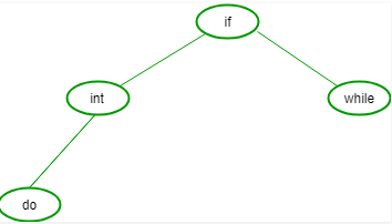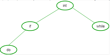 21. Let n = 4 and (a1, a2, a3, a4) = (do, if, int, while).Let p(1 : 4) = (3 / 8, 3 / 8, 1 /8, 1 / 8) and Let q(1 : 4) = (2 / 8, 3 / 8, 1 / 8, 1 / 8, 1 / 8) where p(i) and q(i) denotes the probability with which we search a and the identifier x being searched satisfy ai < x < ai+1 respectively. The optimal search tree is given by (1) (2) (3) (4)