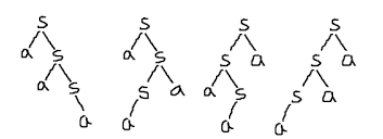 24. The language of all non-null strings of a’s can be defined by a context free grammar as follow: S → aS|Sa|a The word a3 can be generated by __________ different trees.