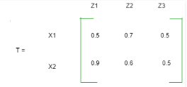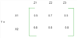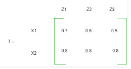 Explanation : Since x is related to y and y is related to z, to relate universe x and universe z we have to compute max-min composition: