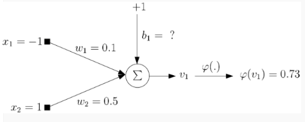 62. Consider a two input neuron with logistic activation function with slope parameter a = 2. Let the inputs be [-1, 1] and the weights are [0.1, 0.5] respectively. The output of the neuron is 0.73. The value of the bias b1 is (Round bias value till 1 decimal point)?