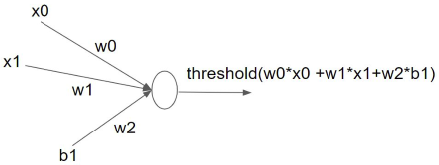 64. Consider the neural network below. Find the appropriate weights for w0, w1 and w2 to represent the AND function. Threshold function = {1, if output >0; 0 otherwise}. x0 and x1 are the inputs and b1 = 1 is the bias.