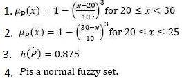 79. Let , be the membership function of the fuzzy set representing 'HOT' weather and be the membership function of the fuzzy set representing 'COLD' weather, where X = {x ≥ 0|x ∈ R} = Temperature measured in 0C. Suppose P be a fuzzy set representing 'Pleasant' weather i.e. 'Not too cold and not too hot' and the linguistic hedge 'too' is represented by h(a) = a3 for a ∈ [0, 1]. Which of the following is/are CORRECT?