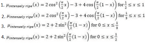 80. Suppose the ripeness of a fruit is a fuzzy set with membership function for 0 ≤ x ≤ 1 where x represents its sweetness. If the inguistic hedge intensely imposes an intensifier, then which of the following is/are TRUE?