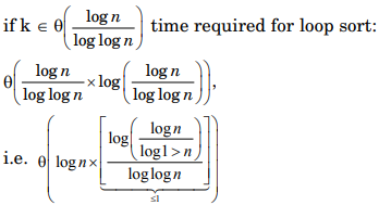 So if K ∈ Θ(log n) time required for loop sort is.