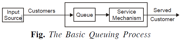 Explanation : The basic process assumed by most queuing models is that “customers” requiring service are generated over a period of time by an “input source”. These customers enter the queuing system and join a queue. At certain times, a member of the queue is selected for service by some rule known as “service discipline”. The required service is then performed for the customer by the “service mechanism”, after which the customer leaves the system. This process is shown in Fig. One characteristic of the input source or calling population is its “size”. The size is the total number of customers that might require service from time to time. It may be assumed to be either finite or infinite. Since the calculations are far easier for the infinite case, this assumption is always made while developing a queuing model. However, the finite assumption must be made if the rate at which the input source generates new customers is significantly affected by the number of customers in the system.